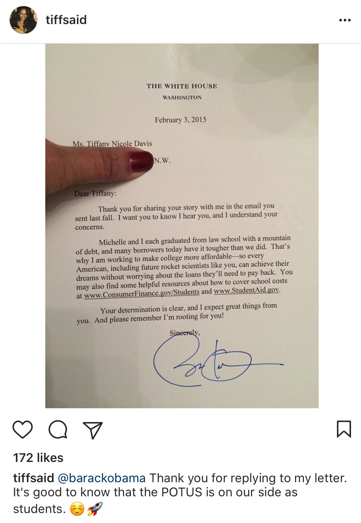 Many of us complain about paying for school and the stress of student loans..not many people have the guts to address the President about this issue! What led you to write your letter to President Obama? How did you feel when he responded? Do you have the letter framed somewhere? Lol